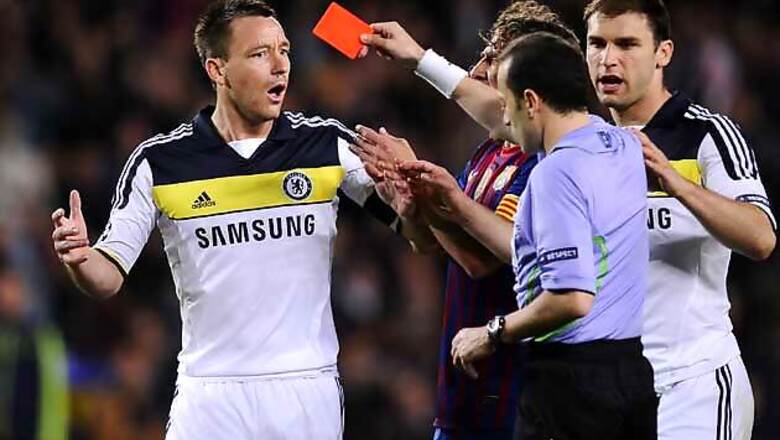 The dismissal was sandwiched between goals from Sergio Busquets and Andres Iniesta, that looked to have put the tie beyond Roberto Di Matteo's men. However, Ramires raced on to a fine Frank Lampard through-ball to lob Victor Valdes and give Chelsea a priceless away goal in first-half stoppage time.