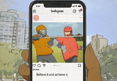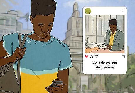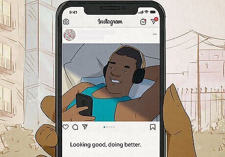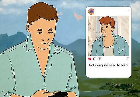 Use a lyric as your caption to show off your music taste. If you’re at a loss for words, this is one of the easiest ways to caption a photo. Just pull up your playlist to see what songs you’ve been blasting on repeat, or use a line from any of the following songs: “Guts over fear.” —Eminem, “Guts Over Fear” “Against the odds, I’d bet on myself.” —Travis Scott, “SKITZO” “The headliner, finisher, I’m the closer, winner.” —Usher, “More” “I’m the son of rage and love.” —Green Day, “Jesus of Suburbia” “Always stay humble and kind.” —Tim McGraw, “Humble and Kind” “I sell the fact that I can’t be bought.” —Arctic Monkeys, “Batphone” “Real G’s move in silence like lasagna.” —Lil Wayne, “6 Foot 7 Foot” “No such thing as a life that’s better than yours.” —J. Cole, “Love Yourz” “I been flexin’ all my life, you can’t finesse me.” —Future, “Touch the Sky” “Everything I’m not made me everything I am.” —Kanye, “Everything I Am” “I’m just tryna live life through a new lens.” —The Weeknd, “Tell Your Friends” “Don’t try to act like someone else, be yourself.” —Frank Ocean, “Be Yourself” “In an interstellar burst. I am back to save the universe.” —Radiohead, “Airbag” “I’m on the pursuit of happiness.” —Kid Cudi, “Pursuit of Happiness (Nightmare)” “I’ll make it to the moon if I have to crawl.” —Red Hot Chili Peppers, “Scar Tissue” “Levitated like I’m David Blaine. Livin’ a dream like I’m David Aames.” —Logic, “44 More” “I am an ocean, I am the sea. There is a world inside of me.” —Bring Me the Horizon, “Crucify Me” “I believe there’s a god above me. I’m just the god of everything else.” —Pusha T, “New God Flow” “Me and my money attached emotionally.” —JID (ft. 21 Savage & Baby Tate), “Surround Sound” “Never let them take the light behind your eyes.” —My Chemical Romance, “The Light Behind Your Eyes” “Look inside of my soul and you can find gold and maybe get rich.” —Kendrick Lamar, “B**** Don’t Kill My Vibe”