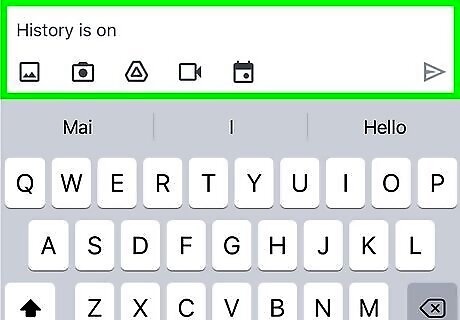 Start chatting. You can enter a message using the on-screen keyboard or you can tap one of the icons to add to your message. The first icon looks like the icon for a picture (two mountains inside a picture frame) and will open your camera roll so you can add an image. The second icon looks like a camera icon and will open your camera so you can add a video or picture to your chat. The third icon looks like the Google Drive icon and it will open your Drive so you can share a file or folder that's in your Google Drive. The fourth icon looks like a video camera and will send a link to a Google Meet (video chat) to the conversation. After you tap the Google Meet icon, tap the Send icon (the paper airplane), and the people in the conversation can click or tap it to join your video meeting. The fifth icon looks like a calendar and will let you schedule a meeting using Google Meet.