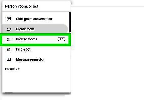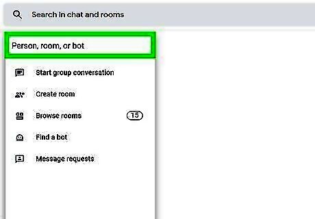 Search for a room. Click or tap + next to "Rooms," select Browse rooms, and enter the name of the room you're looking for. Use this step if you know a specific room that you want to join. To send a DM to someone in your group, navigate to their name within the group (room name > view members), then click or tap the three-dot menu icon and select Message. To leave a room or group conversation, click or tap the three-dot menu icon next to the group's name, then select Leave room.