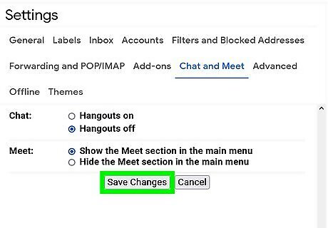 Click Save Changes. You'll see this at the bottom of the settings menu. To start a new chat from Gmail, click the + icon in the panel on the left of your Gmail.