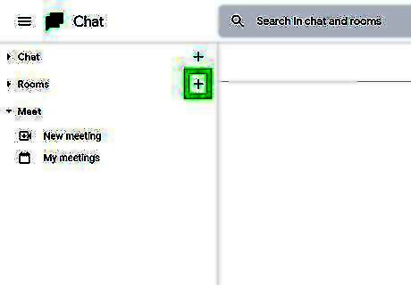 Click + to the right of "Chat." You'll see the "Chat" header in the panel on the left side of the page. If this panel is closed, you can click the three-line menu icon to expand it. If you want to create a room instead of a chat, click the + next to "Rooms" instead.