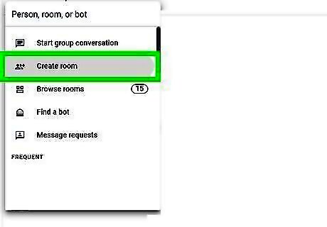 Click or tap + next to "Rooms." You can use a web browser with Gmail, the Google Chats link, the Chats app for your mobile, or Gmail on mobile to use rooms. Rooms and group conversations are similar, but rooms are more formal whereas group conversations are casual. Rooms have more administrative privileges than group and one-on-one conversations. If you want to allow threaded conversations and people outside your organization to join your room, you can make those choices here.