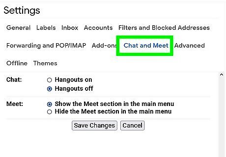 Click the Chat and Meet tab. It's in the horizontal menu running along the top of the Settings page.