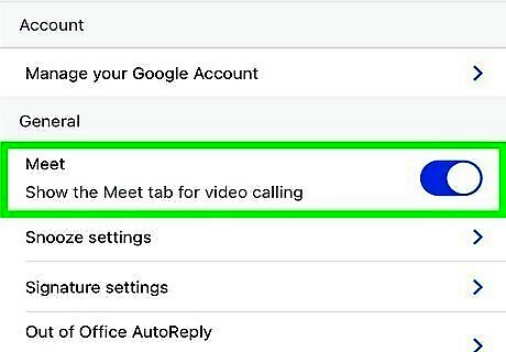 Tap ☰ and tap Settings. The three-line menu icon is in the top left corner of your screen, and the Settings option is generally at the bottom of the menu next to a gear icon. If you have multiple Gmail accounts, select the one you want to use Google Chats with. You can repeat these steps if you want to use Google Chats with multiple Gmail accounts.