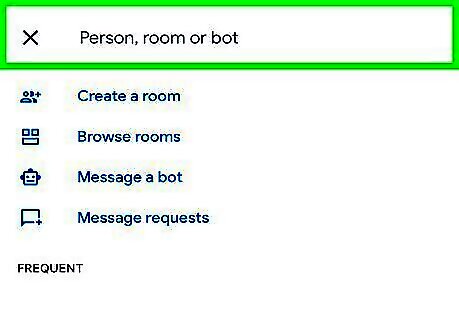 Address the chat to someone. You can either tap from the suggested people listed under "Frequent" or you can choose to either create a room, browse rooms, or see your message requests. If you know the email address of who you want to talk with, enter that here, and their profile will appear under the header "More Results." Tap their profile to start a chat with them. If you want to create a group chat, enter the first name in the address bar then tap the group icon to the right of their name to add more people.