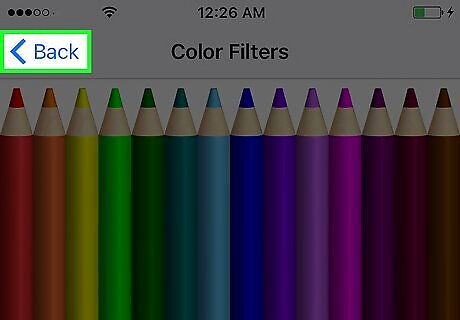 Tap Back to exit your Color Filter settings. This button is at the top left corner of the screen. Now that you’ve chosen a filter, it will be active everywhere on your iPhone, including the lock screen.