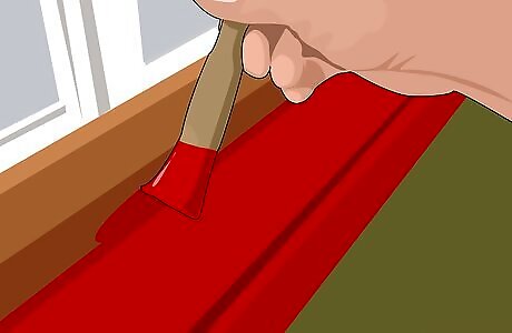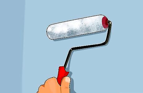 Start painting. To begin painting, run a paintbrush along the edges of the wall carefully, so that tape does not bleed over the tape. Fill in the middle with a paint roller. Wait until the wall is dry to the touch before applying a second coat. This could be six to eight hours or overnight. Use a wide, straight-edged brush to paint trim, moldings, window sills, and door frames.