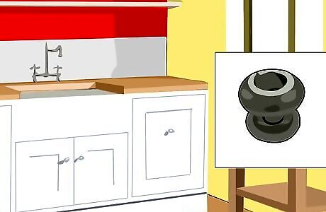 Replace knobs. A cheap and easy way to dress up kitchen cabinets, old dressers, and drawers is to replace the knobs. New knobs can be found at hardware stores, furniture stores, or online. Unscrew the old knobs, and replace them with the new, brightly colored knobs.