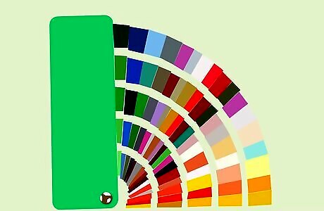 Find sample cards. Visit a local hardware or paint store, and pick up a roll of color sample cards. These are colored cardboard that represent the color as it will appear when painted. Take these home, and hold them up to your wall to see how the color appears in the room’s lighting.