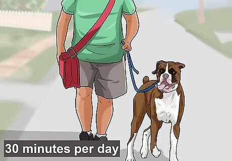 Take your dog on long walks. A working dog will need at least an hour of exercise every day. Go for long walks for about a half hour a couple days a day. Since they're so curious and intelligent, varying where you walk your dog will expose it to new sights and smells, offering necessary mental stimulation.