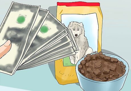 Buy dog food. Ask the shelter or rescue group what they've been feeding the dog before you take it home. It's best to keep a dog's diet consistent, so stick with what it's been eating if it's in your budget and matches your standards. If you want to switch up its food, go with food marked for its specific breed or for larger breeds. If your new companion is a puppy, buy a brand marked specifically for puppies, since they need a higher calorie count. You can also discuss your dog's diet with its vet during the initial exam.