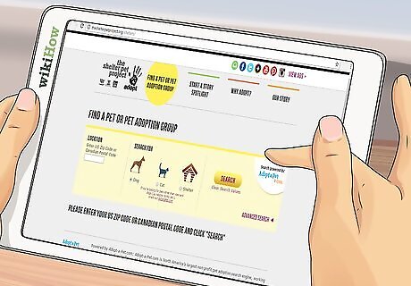 Visit nearby shelters. Look around local shelters and try to find a working breed or mix. You can find a local shelter's contact information online or in your phone book. Give them a call, ask them if any working breeds are available for adoption, and find out if they have specific hours during which you can drop by to see the dogs. In the United States, you can track down local shelters by searching your zip code on The Shelter Project: http://theshelterpetproject.org/shelters/
