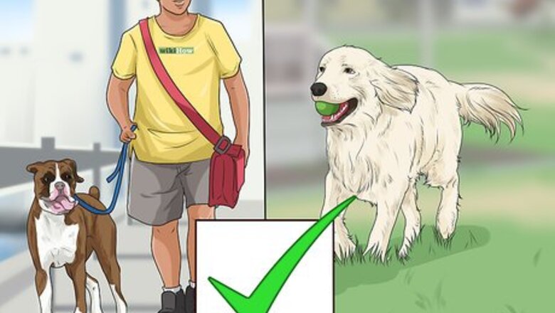 Introduce your dog to its new home. If you have already have a dog or other pet, take your time introducing them to your new dog. Be patient, and first use scent articles to make them aware of each other. Then, keeping them leashed, consider introducing them first in a neighbor's yard, then inside your home through a baby gate. Let other people in your home offer your new dog treats and let it sniff them. Show your new dog where its food, water, and bed are located. Then give it time to adjust and look around its new environment.