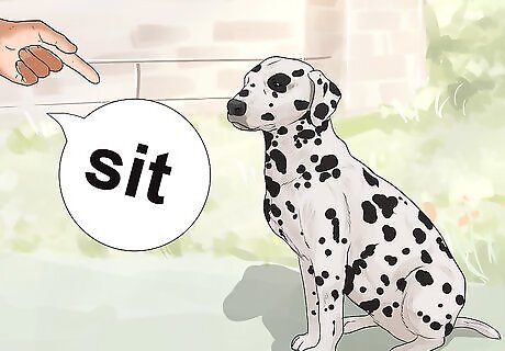 Start training your new working dog. Get your new working dog familiar with your house rules, and don't make any exceptions to the rules you establish. Begin basic command training immediately to offer your new dog the combination of physical and mental exertion it requires. For example, if you don't want your dog on furniture or to beg for food, don't make any exceptions to these rules. This is especially important when you're teaching your new dog your house rules. To teach commands, like sit or stay, first say the command clearly, like “Sit!” Physically guide the dog into the appropriate position if necessary. Offer a small treat as soon as the dog is in the correct position. Repeat around 20 times per training session, offering praise and a piece of a treat the instant the dog follows the command so it'll associate following the command with a reward.