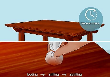 Let the work sit for several hours so it can dry completely, then repeat the boding, stiffing and spiriting sessions. You will do this several times to build up a thick shellac surface on the wood.