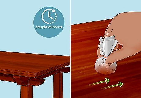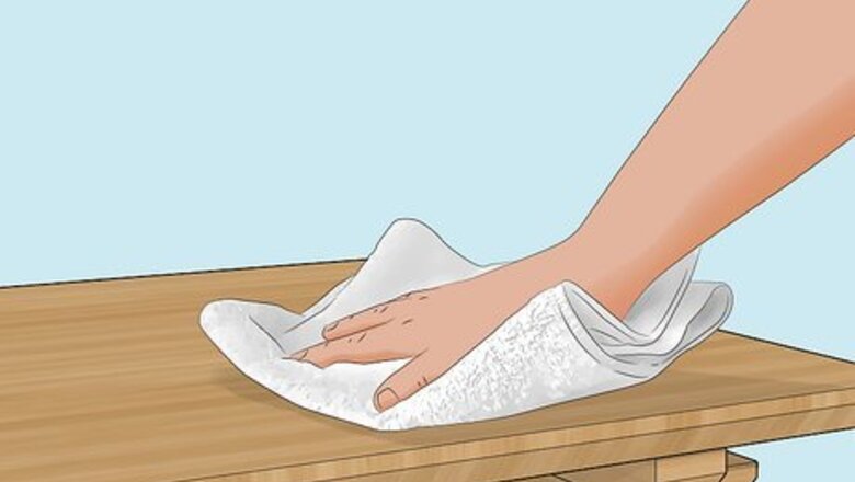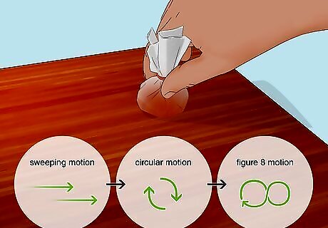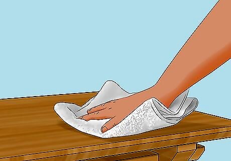 Begin with a clean, perfectly smooth wood surface and a clean, dust-free, warm room. Any imperfections in the wood or dust that settles onto the surface while you're working will show up in the polish. A cold room will cause the polish to be cloudy. Make sure that the surface is clean before you get started—you can wipe down any sticky spills with a damp microfiber towel.