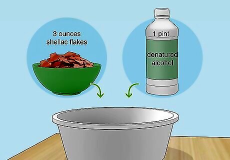 Mix 3 ounces of shellac flakes with 1 US-pint (470 ml) of denatured alcohol. Keep the mixture in a tightly sealed container, pouring small amounts into a shallow bowl as you work. Although you can buy shellac already mixed, the fresher it is, the better the results will be. Use gloves when working with shellac.