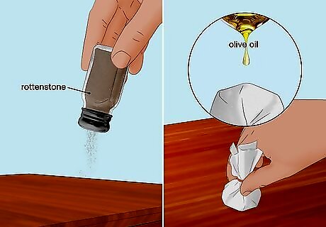 Polish the surface with rottenstone and olive oil. Place the rottenstone in a salt shaker and sprinkle it on the surface, then apply a few drops of olive oil to a fresh pad and rub the entire surface until you're satisfied with its appearance.