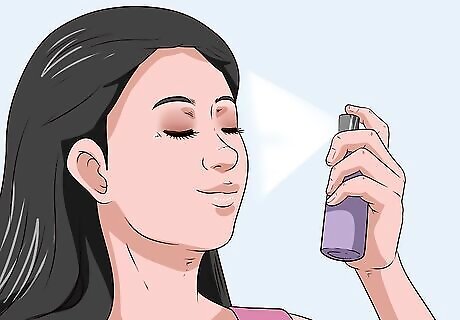 Use a setting spray. Setting sprays use a mist formula to set your makeup. Once you have applied your liner and the rest of your eye makeup, close your eyes. Take the setting spray, hold it about a foot away from your eyes, and give your eyes one spray. Allow the setting spray to dry, and if there is excess moisture, blot carefully with a clean paper towel.