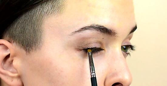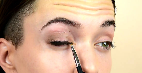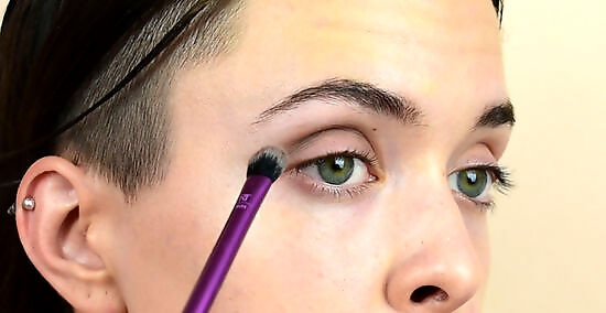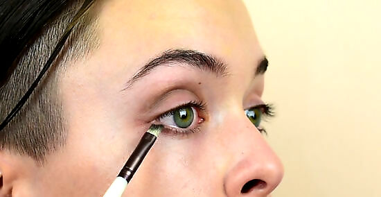 Avoid the inner corner. Start the line just away from the inner corner to minimize discomfort from wearing makeup. Move the line outward toward the outer corner.