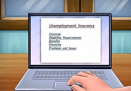 Contact your state's unemployment insurance program. You should contact the appropriate office in your state as soon as possible after you lose your job. Find out if you must apply in person or if you can apply online, through the mail, or over the phone. You also should find out the specific requirements for eligibility in your state and what documents you will need to prove your eligibility.
