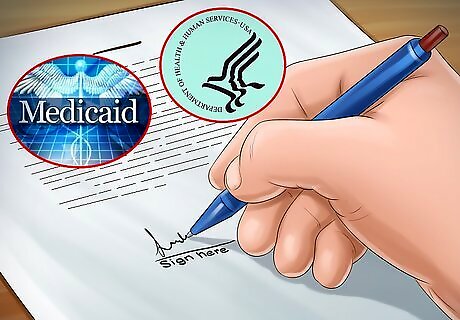 Sign up for Medicaid. Medicaid is a healthcare program for individuals and families with low incomes which is jointly funded by the federal and state governments. Qualifications vary by state. In many states, those with incomes below 138% of the federal poverty line are eligible. In other states, eligibility is much more restricted and reserved for pregnant people, people with disabilities, and some low-income families. To check if you qualify for Medicaid, you should contact your state’s Department of Human Services.