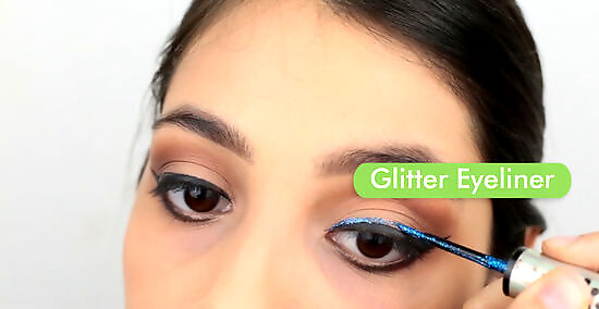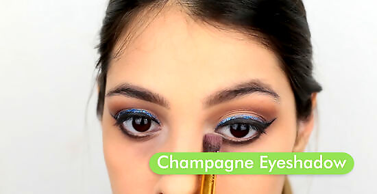 Highlight your eyes with champagne eyeshadow. To add some shimmery highlights to your eyes, apply a dab of champagne eyeshadow to the inner corners of your lower eyelids, just below your tear ducts. Champagne works well with gold glitter, but you can use a different eyeshadow color to accent a different glitter color choice. For example, if you used silver glitter, then a light silver eyeshadow will make a nice accent.