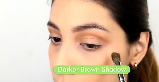 Extend the crease color. After you have applied some light brown to your creases, use the same brush to apply a slightly darker shade of brown to the areas of your eyelids just above your creases. Sweep the brush back and forth over these areas until they are evenly shaded.