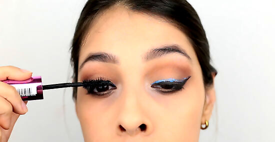 Add some black mascara. You can complete your look with some black mascara or another color if you prefer. However, keep in mind that black mascara usually produces the most dramatic effects. Apply a few coats of mascara to your upper and lower lashes. Make sure that you wipe off any excess mascara to avoid clumps. Use a clean tissue or paper towel to wipe off the mascara wand before you apply it.