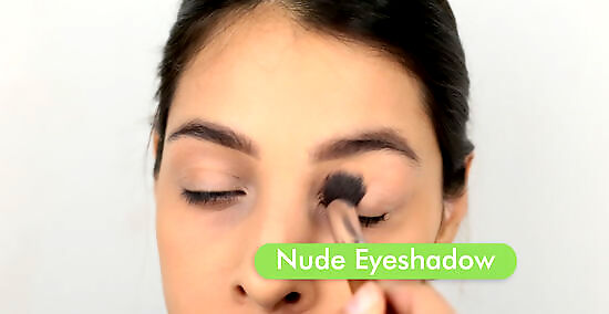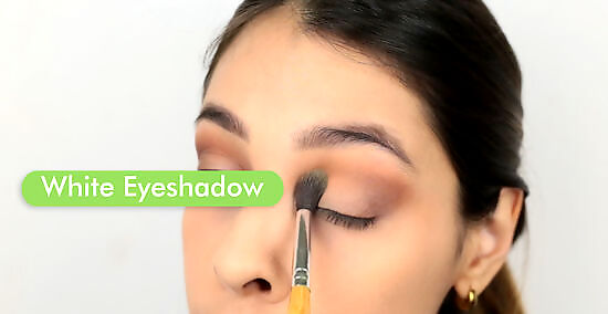 Apply some nude or white eyeshadow. Use a medium size fluffy brush to apply some nude or white eyeshadow to your eyelids. You can use any pale nude or white eyeshadow that suits you. Just make sure that you apply the eyeshadow evenly to your eyelids.