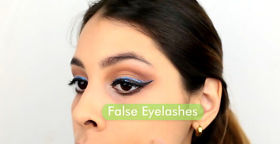 Apply false lashes. For an even more dramatic effect, you can apply some false eyelashes. When applying false lashes, make sure that you apply the adhesive to the lash band and not to your eyelids. Then, let the adhesive dry for a few seconds before applying to your eyes. Make sure that you place the false lashes right against your actual lash line. Never apply false lashes with tweezers or other tools. Use your fingers to apply them.