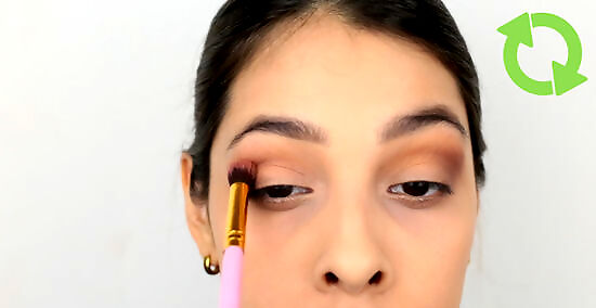 Blend the edges. Next, you will need to blend the areas above your creases. Take a clean fluffy brush and sweep it around the outer edges of the brown eyeshadow that you just applied. Use this brush to blend the edges with quick sweeping motions. Blending will help to prevent the brown eyeshadow from creating a stark contrast with your skin.
