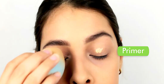 Create a base for your eyeshadow with primer. Applying primer will create a good base for your makeup and it will also prevent your makeup from running. You can apply primer to your eyelids using your fingertips or using a small fluffy brush. Make sure that you apply the primer to your entire eyelid. Start near your lash line and work up to the bottom edges of your eyebrows.