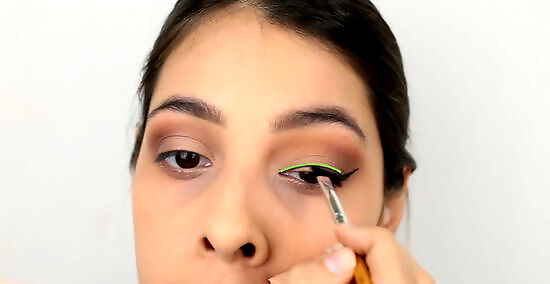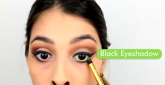 Use black eyeshadow to line your lower lash lines. Next, take a small flat brush and use it to line your lower lashes with black eyeshadow. Try to keep the line as close to your lower lash line as possible, but it is okay if it looks a bit smudged. If you do not have black eyeshadow, then you can use black eyeliner and smudge the edges a little bit.