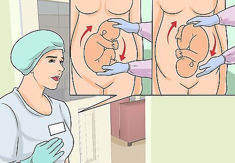 Learn how to turn a breech baby from your midwife or your obstetrician. A baby that is breech is positioned butt-first or feet-first in the womb and if not moved, can cause complications during delivery. If your baby is breech at about 36 weeks of pregnancy, your midwife or doctor can show you hands-to-belly movements to turn the baby so he is head first. These movements can reduce the need for a C-section by ensuring your baby in is a good position for labor. If your baby is a bad position during labor and may have a hard time passing through your pelvis despite hand movements to shift him, your obstetrician may use forceps or a vacuum extractor as a safe alternative to a C-section. Talk to your obstetrician about these procedures and specify in your birth plan if you would prefer these options to a cesarean section.