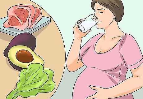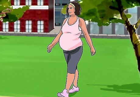 Exercise throughout your pregnancy. As long as your doctor or midwife approves, moderate exercise will also help you stay fit and ready to meet the demands of childbirth. Do low impact exercises like swimming, walking, and yoga. You can also do targeted exercises made for pregnant people, such as ab exercises. Avoid exercises where you lie flat on your back after your first trimester, as well as contact sports, and activities that pose a risk of falling, such as skiing, surfing, and horseback riding.