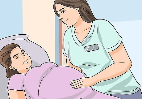 Get a doula for additional support. Doulas are non medical professionals who can be hired to accompany you to your hospital or birth center and offer you extra assistance throughout your labor and delivery. They are not medical care providers, but their guidance and support can contribute to faster labors with fewer complications and lower rates of cesarean sections. A recent study showed that many pregnant people do not know about the services provided by a doula and as a result, are not reaping the benefits of doula care. Ask your obstetrician to recommend a doula or ask other mothers if they can recommend a doula. Some birthing centers may offer doula assistance as part of your overall care at their facility. Keep in mind the services of a doula will likely not be covered by your health insurance and doula rates can range from several hundred to several thousand dollars.