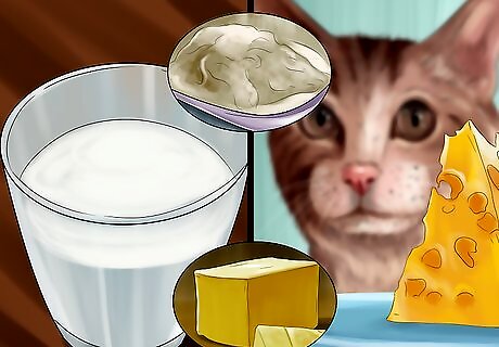 Never give your cat dairy products. Though kittens can have cow’s milk, adult cats are often lactose intolerant and cannot digest dairy products properly. Dairy products like cow’s milk, cheese, yogurt, or butter can be harmful to cats. Consuming dairy products can cause diarrhea, upset stomach, and vomiting in cats since cats do not have the enzyme lactose that would break down the milk sugar for them. You can give your cat lactose-free milk or live culture yogurt, as they do not contain lactose and are safe for cats to eat at any age.