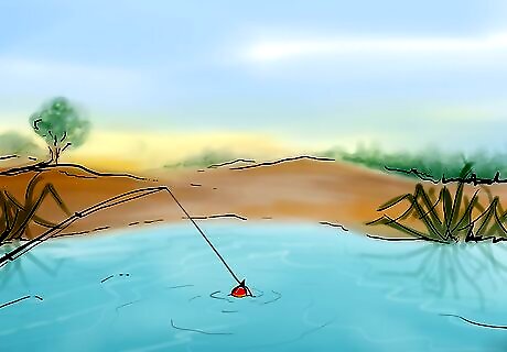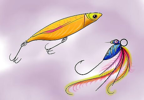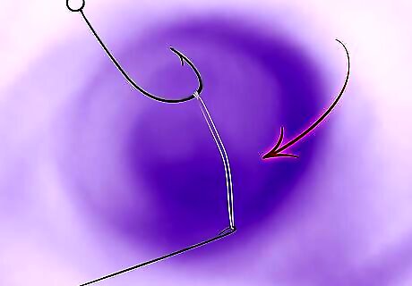 Buy artificial bait for the right depth. You can find artificial lures that sink, float, or stay just under the surface. In addition to customizing for your fish's habits, you can find artificial bait intended to attract a specific species by smell or appearance. In order to hook a standard artificial "grub," thread the hook through the mouth of the bait until the front reaches the eye of the hook. Push the end of the hook out through the grub's stomach.