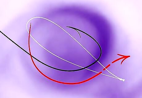 Twist the hook repeatedly. This takes up slack in the line and brings the hook closer to the fish. Do this until there's only a small gap between the fish's head and the twists in the line.