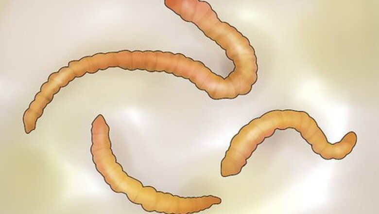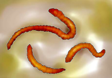 Use worms and mealworms when in doubt. This bait is widely used in many types of fishing. Use earthworms or manure worms in freshwater and bloodworms or sandworms in saltwater. Mealworms and other live grubs are usually used for trout or bass. Pierce through several smaller worms or cut up worm halves to hide the hook in a mass of wriggling worms. Some hooks come with smaller hooks attached to the side for this purpose. For large worms, thread a single worm along the hook until the hook is mostly or completely hidden. For very large worms, pierce the hook through several points of the body. Leave a length at the end to wriggle and attract fish.