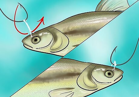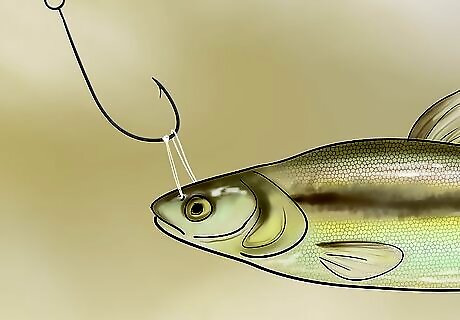 Put a crochet hook through the live bait. You can do this through the eye sockets above or in front of the eyes (not through them), or through a hole in its back near the head. You can use an open eye live bait needle instead of a crochet needle.
