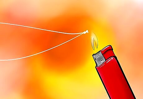 Use a lighter to melt the line ends (optional). Hold the lighter flame over the two ends until they are melted enough that they cannot pass through the knot. Pull your loop as hard as you can to make sure it doesn't come apart.