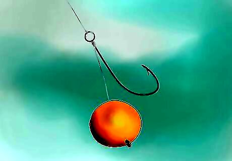 Customize doughballs to your fish species. Commercial doughball paste can be purchased in labeled varieties that attract bass, trout, or another specific species. You can also make your own by boiling hot water, flour, cornmeal, and molasses for a few minutes and letting it cool. Fishermen add anything from cheese to garlic to this recipe in their efforts to attract an individual fish species. Form the paste into a ball over the entire hook. Press it into place so the hook is hidden completely. Some hooks include wire springs to help keep the doughball in place.