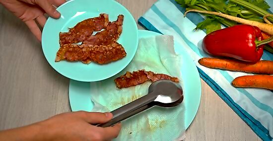 Serve the hot turkey bacon or store it in the refrigerator. Cool leftover turkey bacon and refrigerate it in an airtight container for 4 to 5 days. Keep in mind that the turkey bacon will probably lose some of its crispiness.
