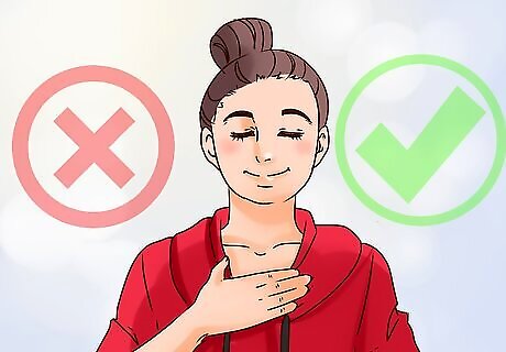 Develop your sense of right and wrong. The world today is fast and impatient, but being a better person involves taking the time to work on your values. Decide what values and virtues are most important to you. Create a personal system of morals by joining clubs and organizations that will help you build your virtues, like a sports team, community service clubs, choir, or student government. Empathy, honesty, patience, humor, and perseverance are just a few examples of good values. Consider some clubs and activities that might help you develop values. For instance, joining a sports team can help you practice perseverance. Joining student government can help you develop dependability, and doing community service can help you cultivate empathy and generosity. Think about how you can put those qualities into practice throughout the school day. For example, if you think generosity is a good value, then find a way to really brighten someone’s day by sharing something that belongs to you.