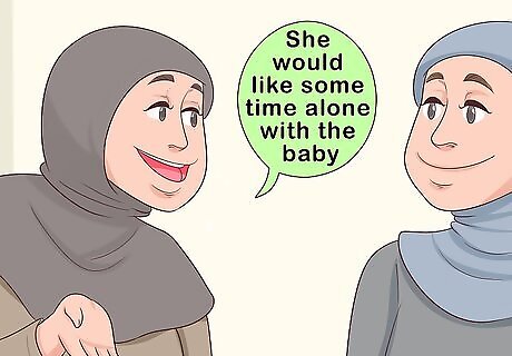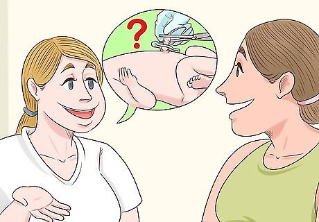Talk to her about immediate skin-to-skin contact with her baby. Ask if the mother wants to hold her baby right away after birth so you can communicate this wish to health care providers. Immediate skin-to-skin contact between mother and baby after birth has been shown to have a number of physiological benefits, including easing breastfeeding and decreasing stress hormones in the baby. If the baby is healthy and does not need immediate medical attention, hospital procedures can delay measuring and weighing of the baby for up to an hour after birth.