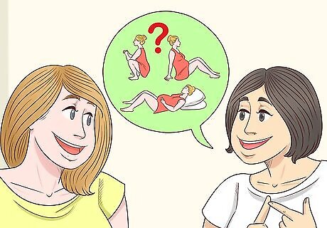Talk to her about different positions for giving birth. There are a variety of positions that can work for the different phases of labor, and it’s worth looking into what would be the most comfortable for the mother. You can even practice some of these positions with her beforehand to get a sense of what she likes. Some examples include being on her hands and knees, sitting, lying on her side, or squatting.