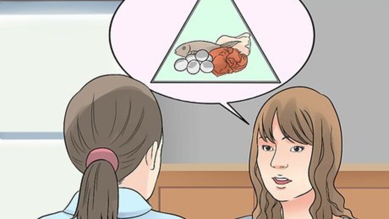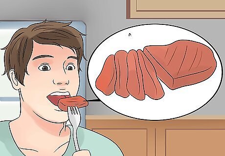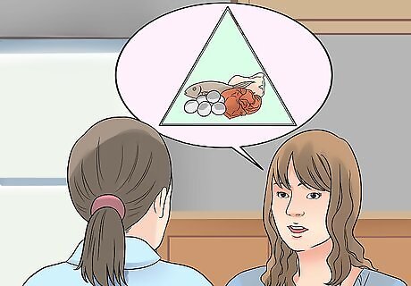 Eat lean meats. This is determined by the amount of fat in a 3 oz piece of meat -- it has to have less than 10 grams of total fat. Turkey and chicken are lean, but some red meats are as well. Look for cuts with “top” or “loin” in the title. Fish and lean meats are a great source of protein. These are important to eat as part of a balanced diet, but they should not be the elements you eat the most. You need to eat more vegetables and fruits than lean meats.